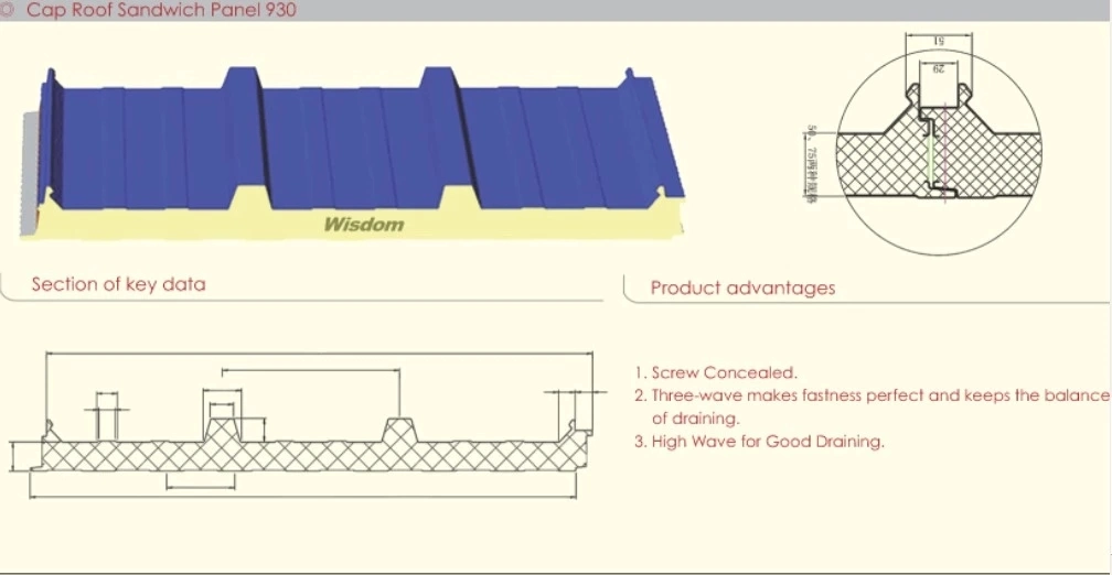 2,Thermal Insulation:The thermal conductivity of PU/PIR is 0.019-0.021W/m.k.Unique joint gurantee the tightness and insulation.
